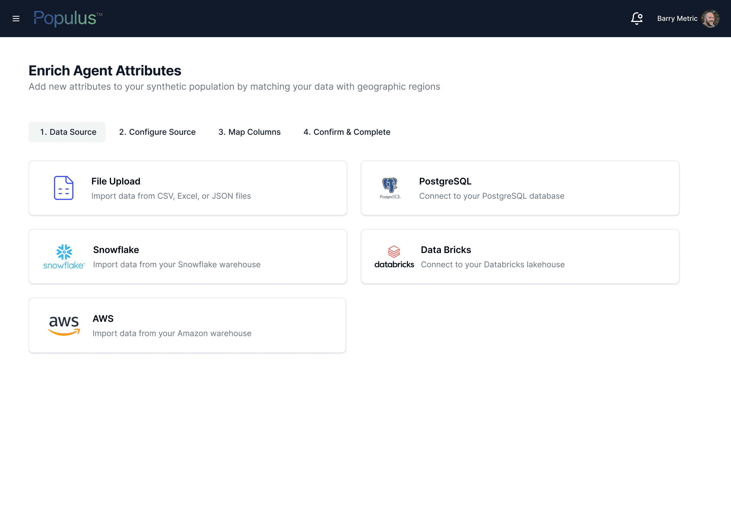 Upload your datasets and Populus intelligently projects them across the entire population. Statistical matching ensures your data, market research, behavioral patterns, and forecasts maintain accurate demographic, geographic, and socioeconomic patterns.